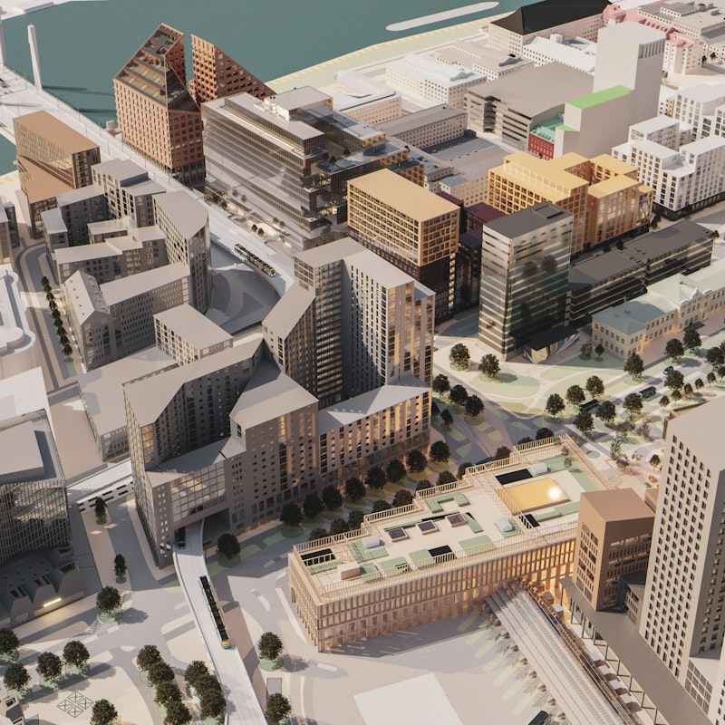 Vi bidrar till utvecklingen genom projekt som Aria, Tennet och Kämpegatan 3–7, där befintliga kontorsfastigheter utvecklas för att möta dagens behov. Därutöver har vi en option på byggrätter i närliggande Lilla Bommen om cirka 100 000 kvm BTA.