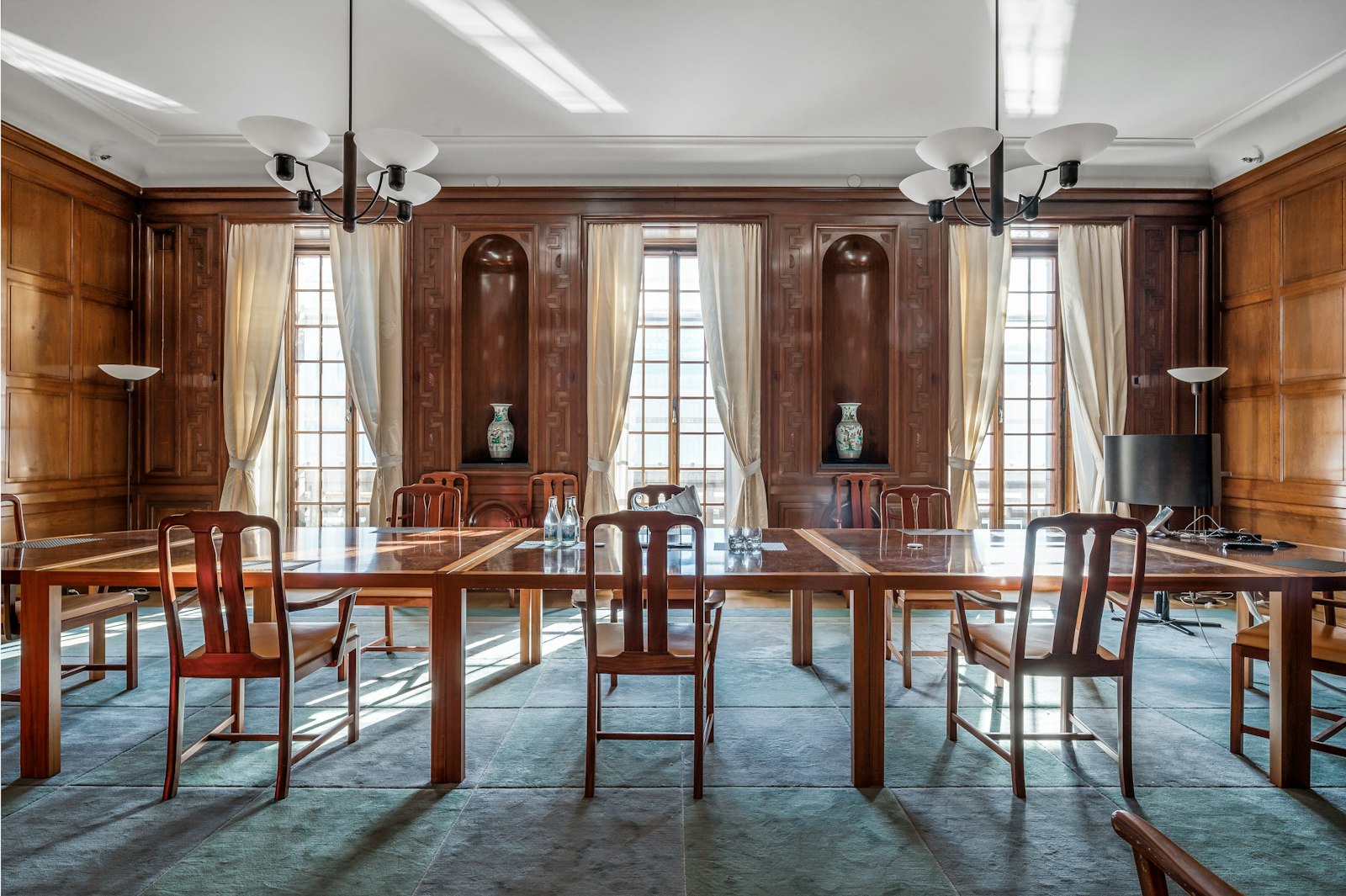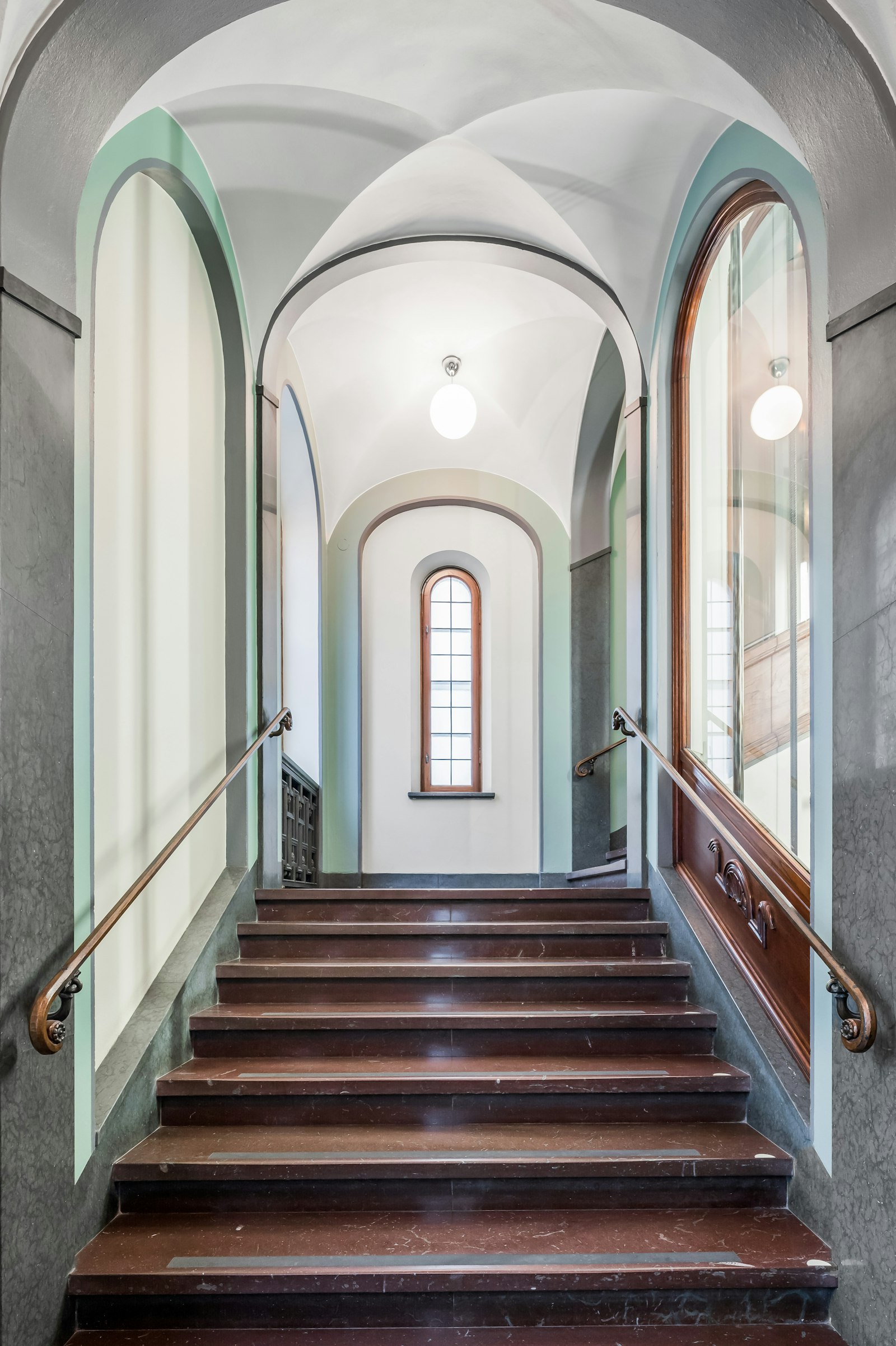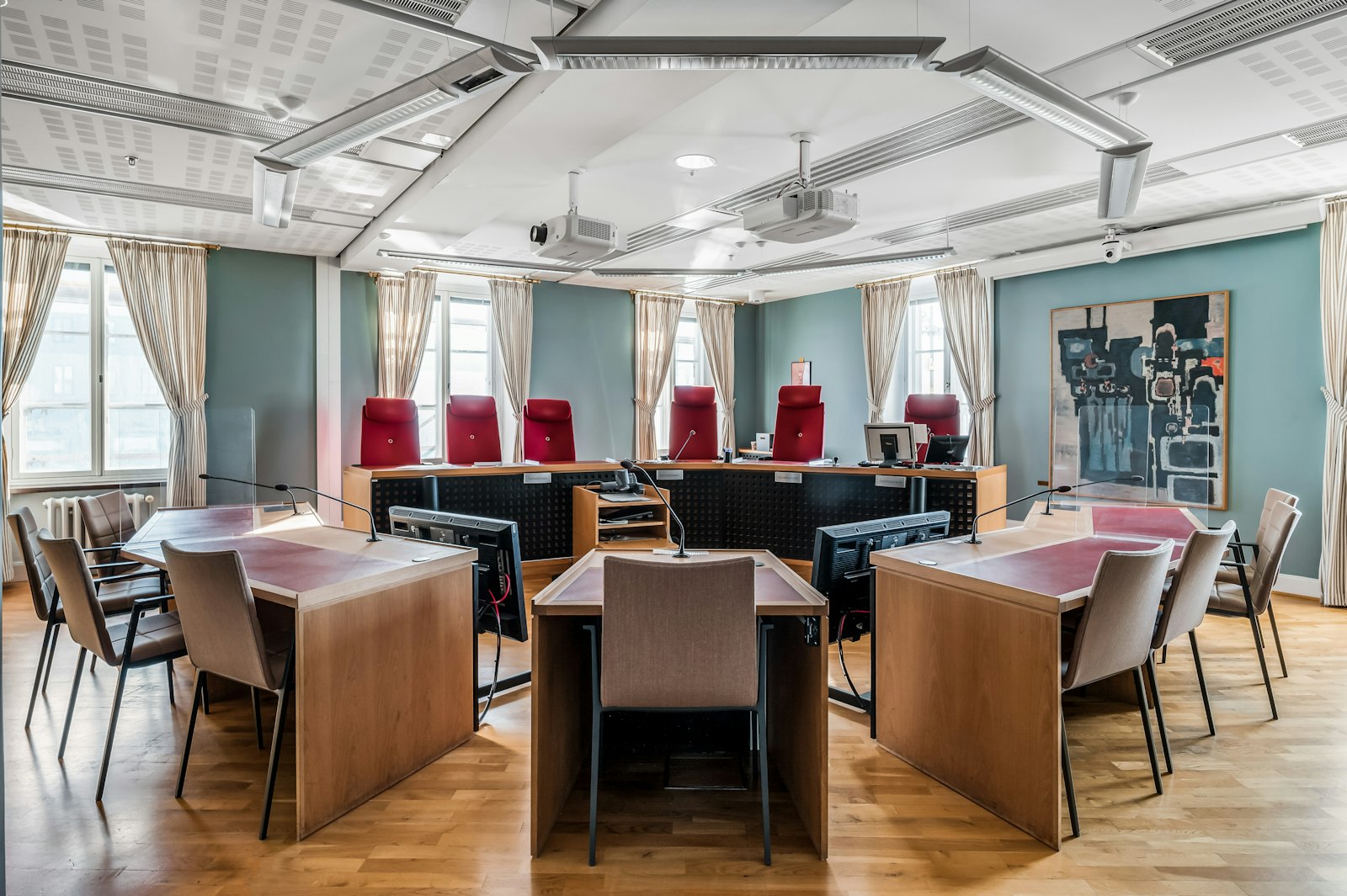 Entrén välkomnar besökare med reception och ett karaktärsfullt trapphus. Från de övre planen nås ljusa utrymmen med generösa takhöjder och ett centralt placerat ljusinsläpp via glastak. Lokalerna är idag anpassade för domstolsverksamhet med salar och cellkontor, vilket speglar fastighetens representativa karaktär.