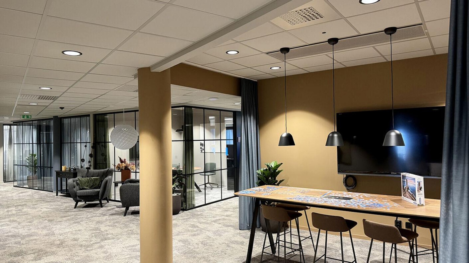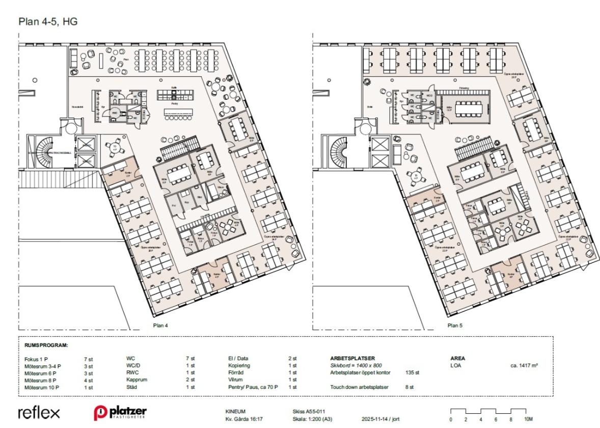 Vill du ha din arbetsplats i en unik fastighet som ” har allt”? Då har du kommit rätt! På våning 5 & 6 i Kineums ursprungsbyggnad har vi nu två ytor som är möjliga att via interntrappa sättas ihop till det större företaget med 135 arbetsplatser fördelat på ca 1400kvm. Det är också möjligt att bara hyra den ena våningen om ca 700kvm fördelat på ca 60 arbetsplatser. Lokalen är idag till största delen en råyta vilket innebär att ni får vara med från början och forma er drömarbetsplats. På bilderna kan ni se hur vi anpassat en grannlokal med liknande förutsättningar från start.