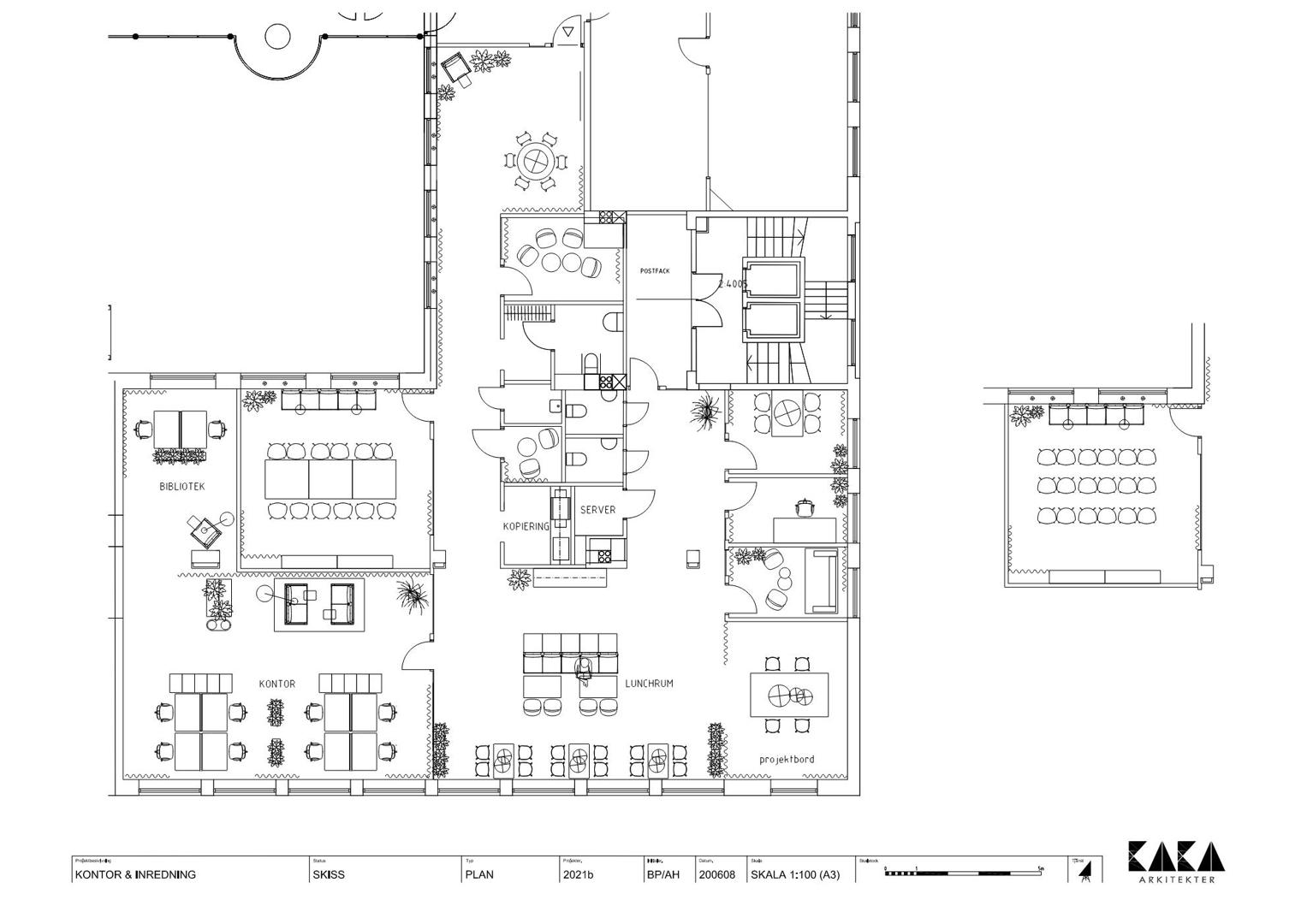 Lokalen har en smart planlösning som kombinerar öppna och avskilda ytor på ett naturligt sätt. Direkt vid entrén möts ni av en inbjudande lounge som skapar ett professionellt första intryck för både medarbetare och besökare. Här finns öppet kontorslandskap, fem separata kontor eller mötesrum, telefonrum samt ett centralt placerat pentry som blir en självklar samlingspunkt under arbetsdagen.