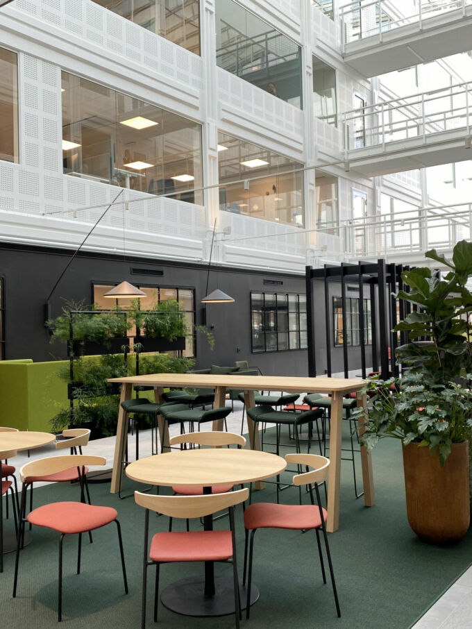 På Kämpegatan, i expansiva Lilla Bommen precis intill Göta älv, står denna tvillingbyggnad som uppfördes 1988. Under 2018/2019 genomgick huset en omfattande utveckling, renovering och ombyggnation som du kan läsa mer om i artikeln ”En total omvandling – huset står nu redo för framtiden”. Varje våningsplan har en entrédel som är öppen mot den inglasade ljusgården med utsikt över Göta älv. Ljusgården och bottenplanet inbjuder till umgänge. Nu finns också ett extra våningsplan med takterrass. Lilla Bommen ligger inom Älvstaden - Nordens största stadsutvecklingsprojekt – där Göteborgs Centrum ska växa till dubbel storlek.
